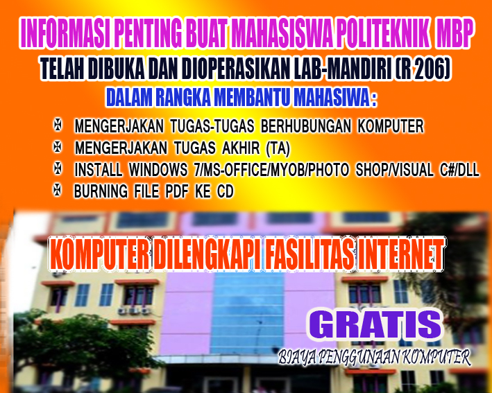 Zaman now, ga usah jauh-jauh cuma buat ngerental komputer bagi kamu, kamu, dan kamu semua mahasiswa Politeknik MBP.